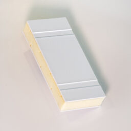 Isolant haute densité 30kg/m3 renforcé par 2 feuilles de contreplaqué positionnées côté extérieur et intérieur.