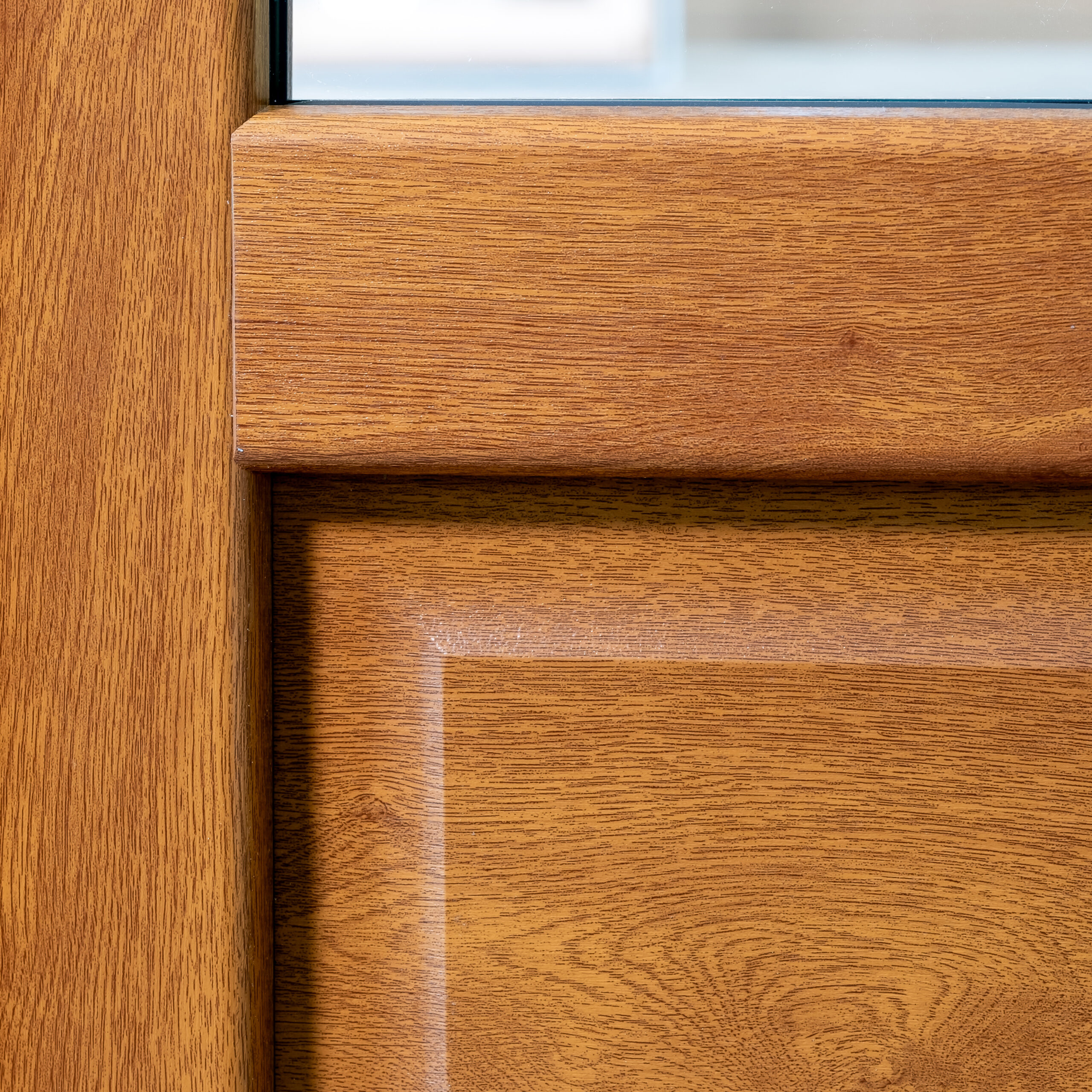 Une porte panneau, plus classique dans sa conception, est constituée d’un cadre dans lequel est inséré un panneau décoratif qui s’inscrit donc dans la tradition menuisière des portes à parcloses. Une épaisseur réduite au niveau des panneaux décoratifs donne un relief saillant, affirmant ainsi le caractère plus traditionnel de la porte.